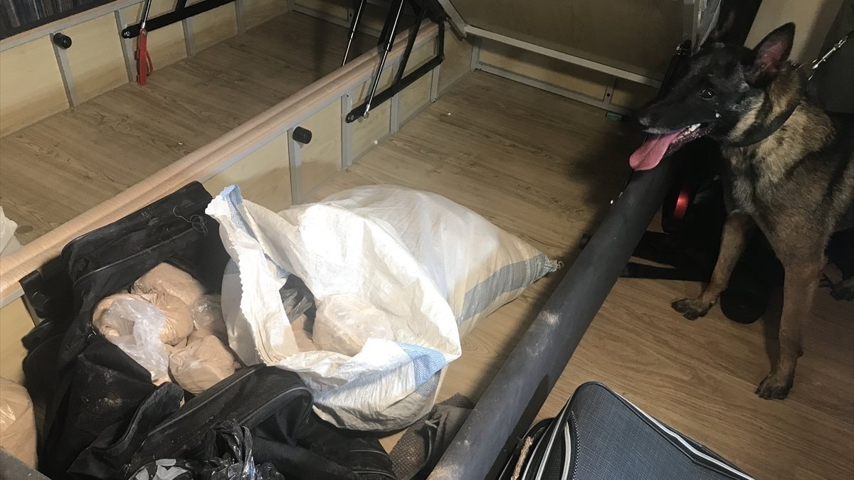 Tim ve Geeta adlı 2 narkotik köpeğinin de katıldığı operasyon kapsamında evde yapılan aramada yatak bazasının altında poşetlere doldurulmuş yaklaşık 50 kilogram eroin ile uyuşturucu madde üretiminde kullanılan eşyalar ele geçirildi.