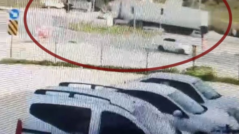 Yola çıkan otomobile tırın ön bölümden çarptığı anlar görüntülere yansıdı.