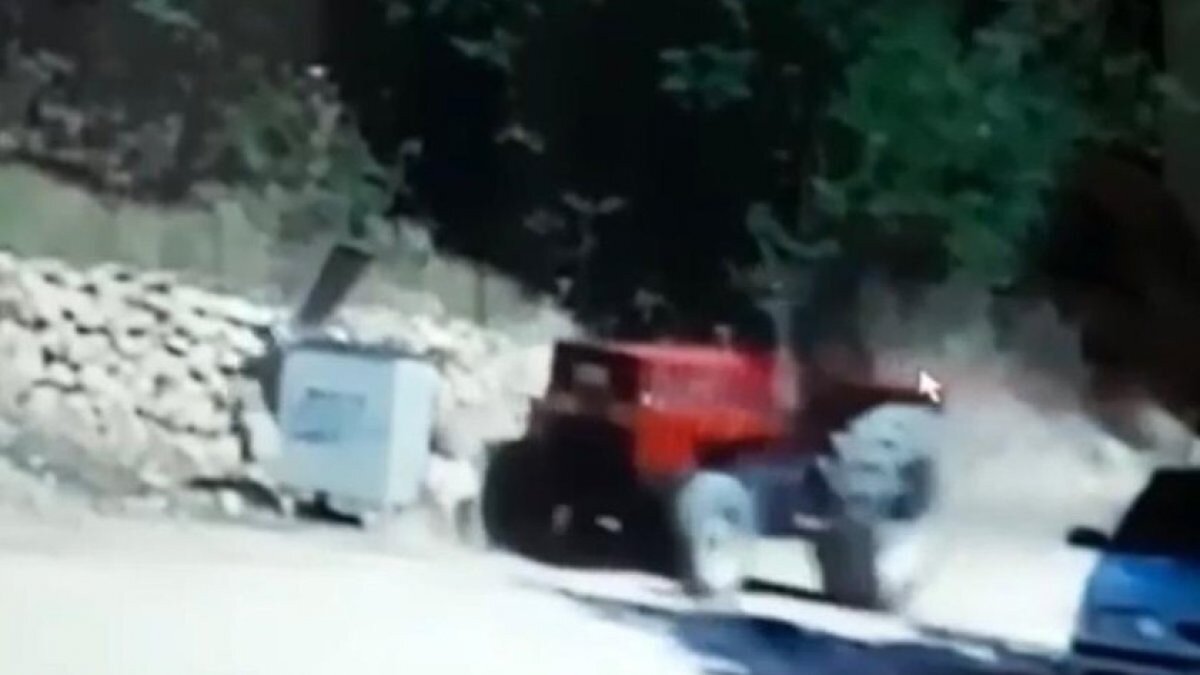 Traktör, yol kenarındaki beton direğe çarparak durabildi.