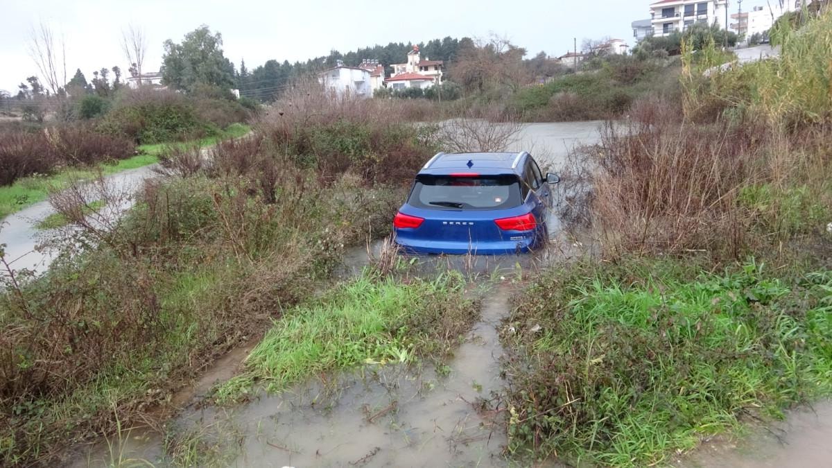 Araç sürücüsünün, camlarına kadar yağmur suyunun içerisinde kalan otomobilden yanındaki köpeği ile birlikte bir vatandaşın yardımıyla çıktığı bildirildi.