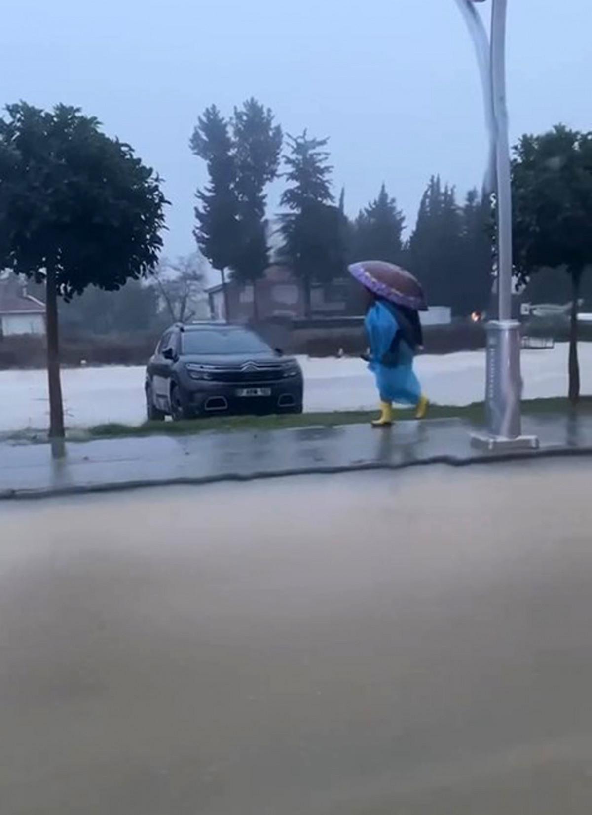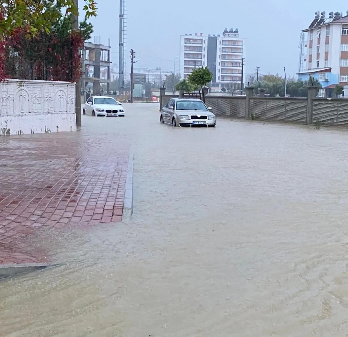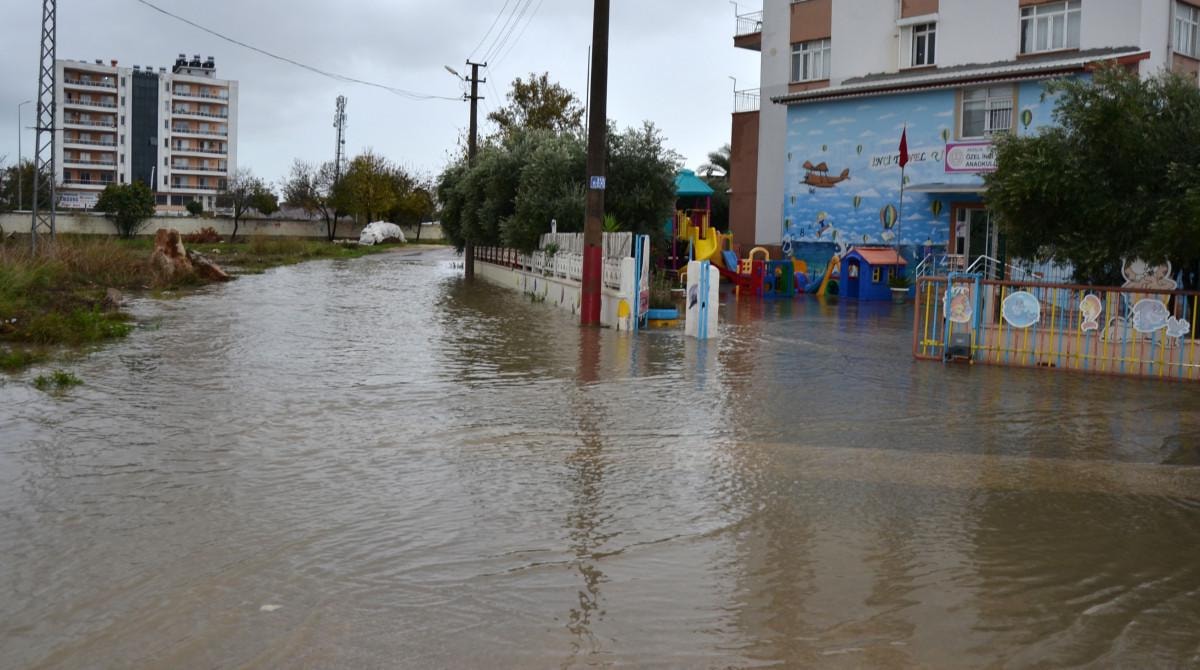 Serik ilçesinde sabah saatlerinde kuvvetini artıran yağmurla birlikte cadde ve sokaklar göle döndü. Serik ilçesi Merkez Mahallesi Dumlupınar Caddesi'nde rögarlardan taşan sular bir okulun önündeki sokağa doldu.