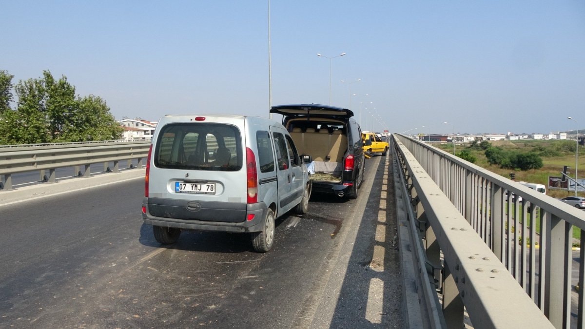 07 YMJ 78 plakalı hafif ticari araç otomobile arkadan çarptıktan sonra çarpmanın şiddetiyle park halindeki tur minibüsüne de arkadan çarptı.