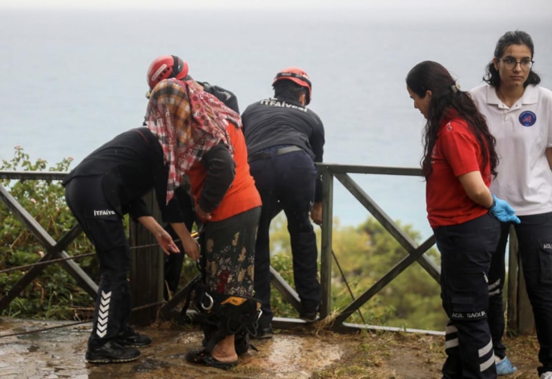 Muratpaşa ilçesinde çıktığı falezlerde mahsur kalan Nubar B., bulunduğu yerden inemeyince itfaiye ekipleri tarafından halat bağlanarak kurtarıldı. Nubar B., yüzünü başörtüsüyle kapattıktan sonra kendisini görüntüleyen gazetecilere saldırdı. İtfaiye ekiplerinin araya girmesiyle tansiyon düşürüldü.