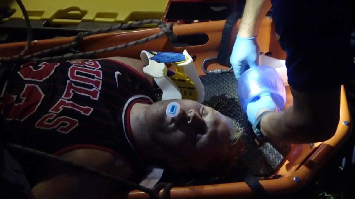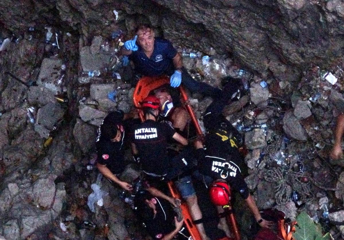 Kurtarma aracı ile bölgeye gelen itfaiye ekibi, makaralı halatla falezlerdeki boşluktan inerek, hareketsiz yatan kişiyi kaşık sedye ile yukarıya taşıdı.