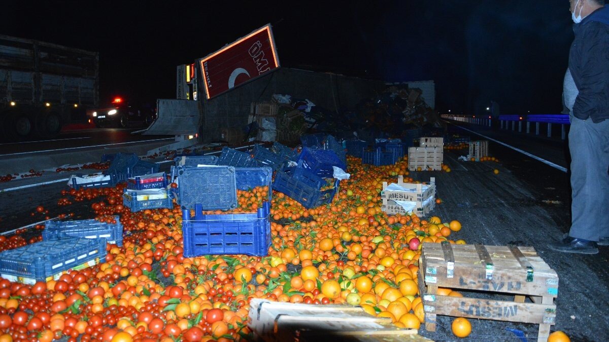 Antalya'de Korkuteli-Elmalı karayolunun 5. kilometresinde meydana gelen olayda, Elmalı istikametinden Korkuteli istikametine gelen Mustafa Karga (29) idaresindeki 64 BN 326 plakalı meyve yüklü tır, yağışlı havada yolun kaygan olması nedeniyle virajı alamayarak devrildi.