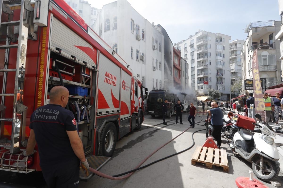 Antalya'nın Muratpaşa ilçesinde bir sokak üzerinde park halinde bulunan plakasız ve çekme belgeli midibüs, henüz belirlenemeyen bir nedenle yanmaya başladı.