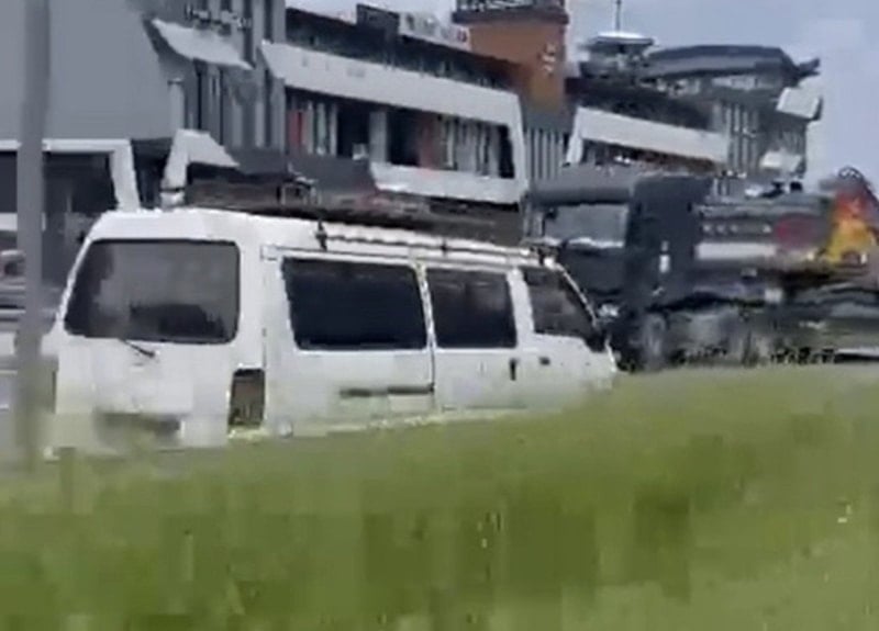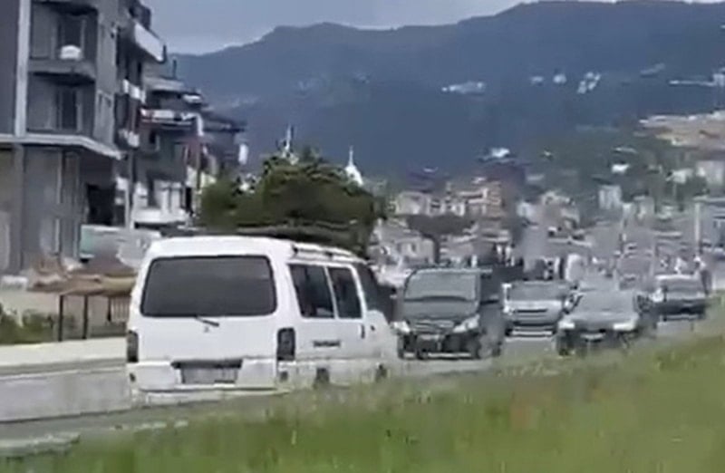 O anlar cep telefonuyla görüntülenirken yoğun trafiğin olduğu bölgede sürücüler, korna çalarak tepki gösterdi.