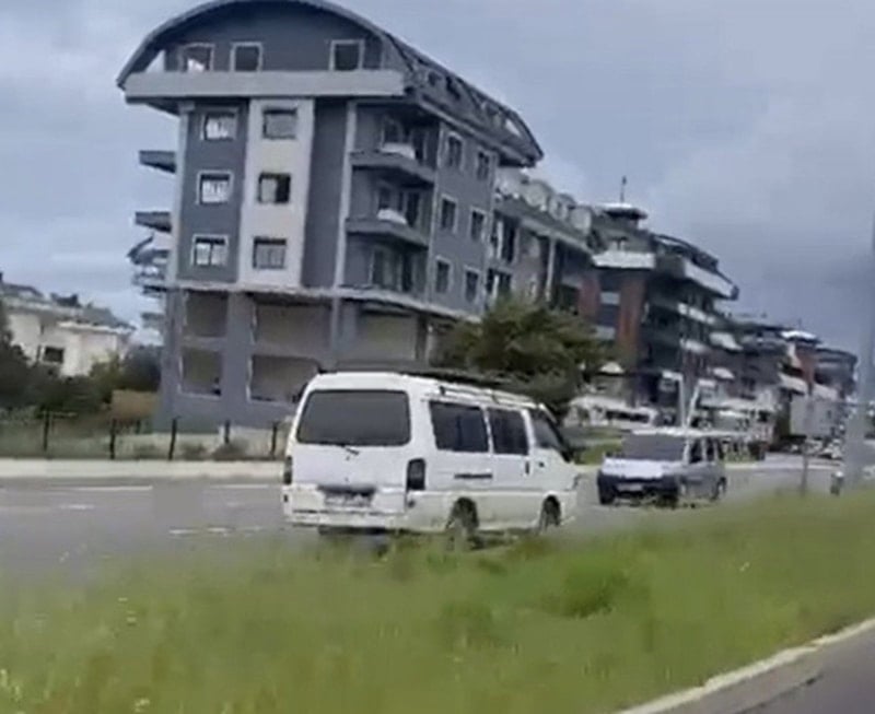 Antalya Alanya'da minibüs sürücüsü, diğer sürücülerin canını hiçe saydı.