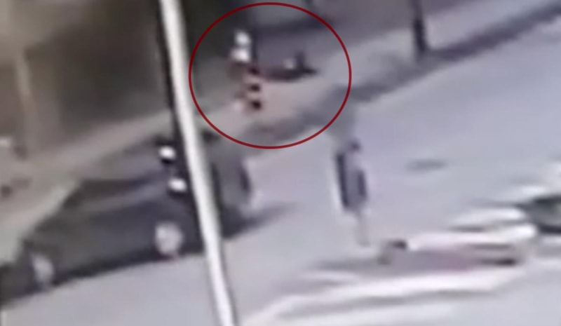 Kaza anı güvenlik kamerasına yansırken motosiklet sürücüsünün otomobilin yola çıktığını fark ettiğinde çarpmamak için frene bastığı, motosikletin devrilip sürüklenerek otomobilin tekerine çarptığı görüldü.