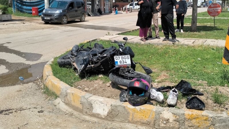 Bu sırada sola dönmek için duraklayan otomobile çarpan motosiklet sürücüsü genç kadın savrularak Y.Ö.'nün idaresindeki minibüs çarptı.