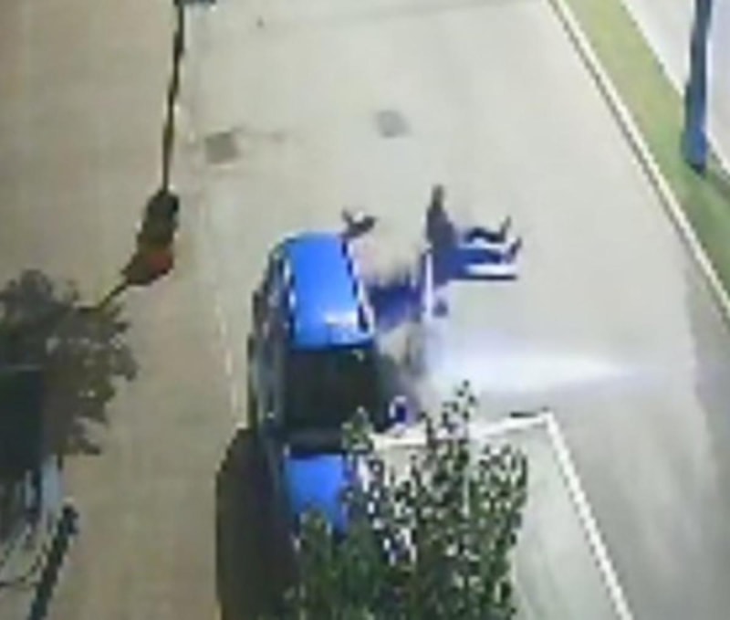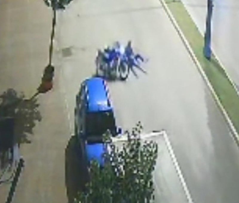 Motosikletin park halindeki araca çarpma anı güvenlik kamerasınca kaydedildi.