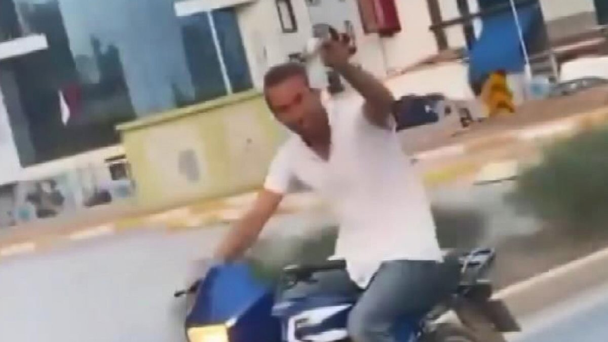 Motosiklet sürücüsü, o sırada seyir halinde olan bir araçtaki kadın tarafından cep telefonu kamerasıyla görüntüledi.