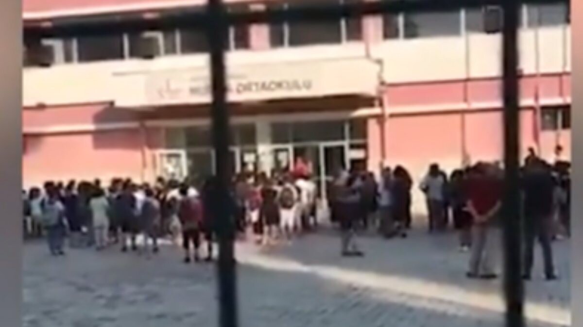Okulun müdür yardımcısı kadın öğretmen, öğrencilerin okul önünde toplandığı sırada yaptığı konuşmada tehditler yağdırdı.