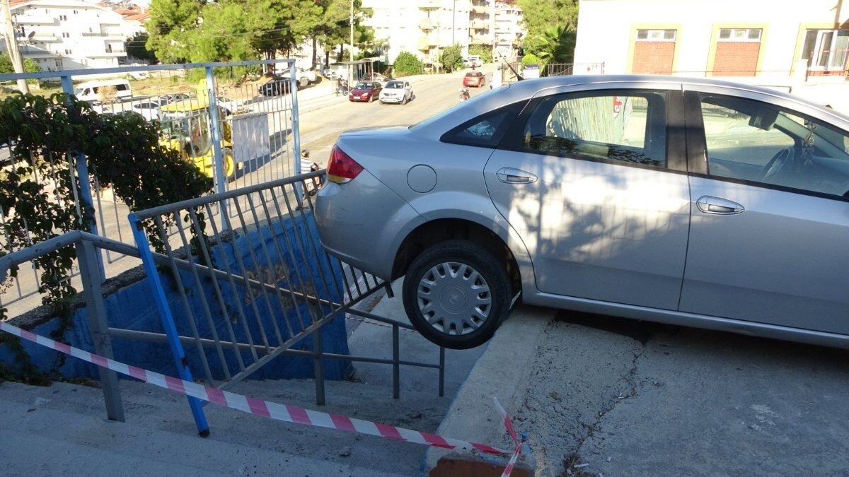 Antalya Manavgat Milli Egemenlik İlköğretim Okulu önünde okul öğretmenlerinden Ebubekir Ekici, okulun önünde bulunan rampada otomobilini el frenini çekmeden park etti.