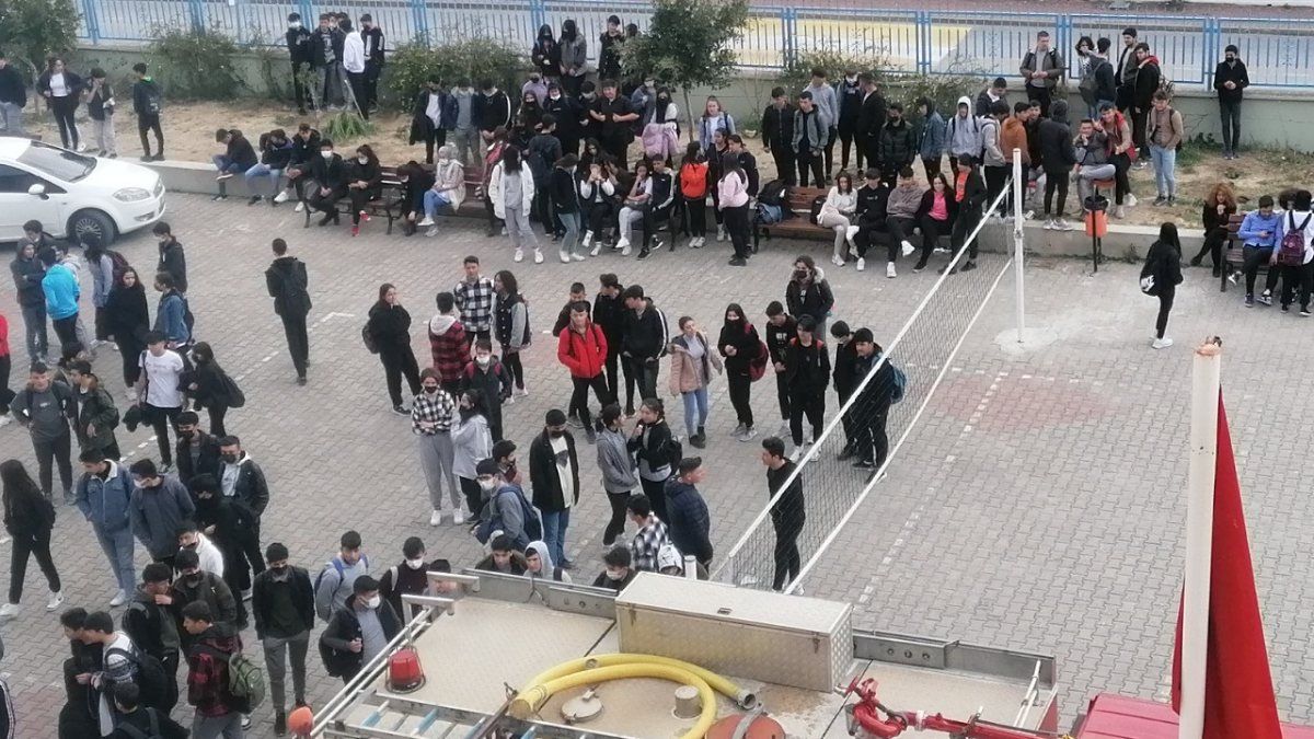 Koridora ve sınıflara yayılan duman, öğrencilerin panik içerisinde sınıfları boşaltarak bahçeye çıkmasına neden oldu.