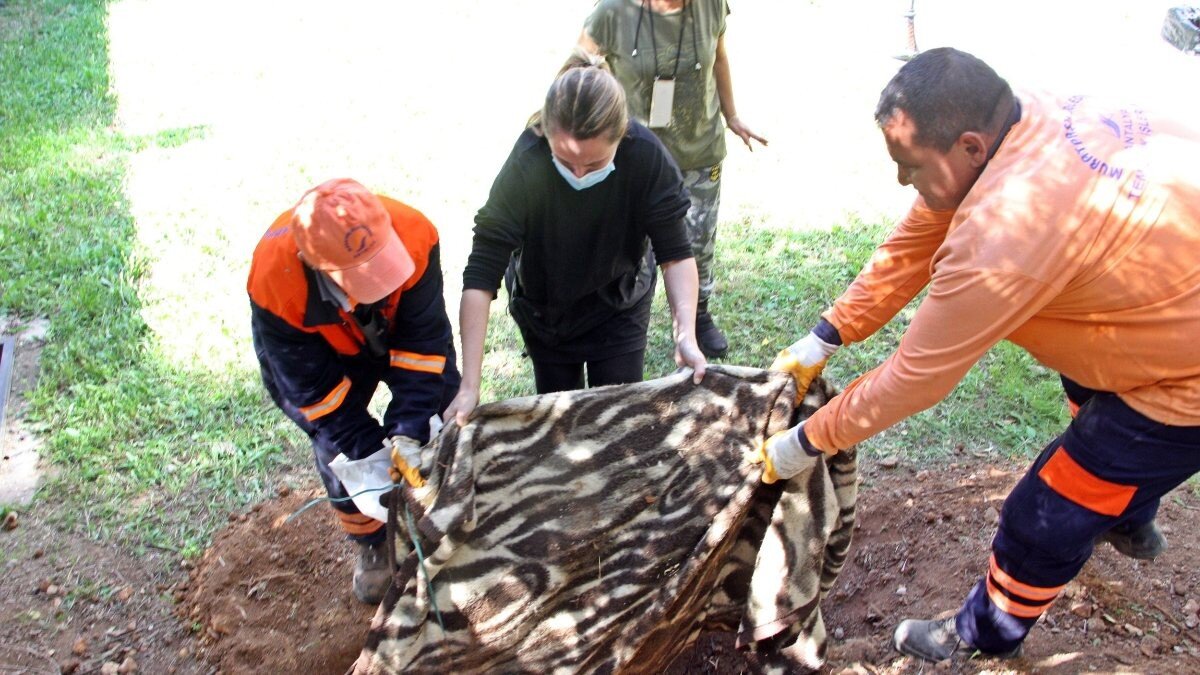 İhbar üzerine parka gelen polis ekipleri, gömülen alanın açtırınca köpek ölüsüyle karşılaştı. Bunun üzerine bölgeye zabıta ekipleri çağrıldı.
