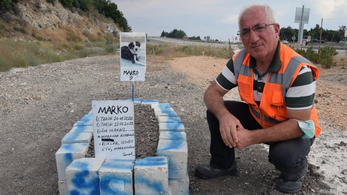 Köpeği için kazanın olduğu yere mezar yapan Cemal Kaya, üzerine de Marko’nun fotoğrafının yanı sıra doğum ve ölüm tarihlerini yazdı. Kaya, mezar taşına köpeğinin ölüm nedenini 'Maganda kurbanı', altına da 'Işıklar içinde uyu Markocuğum' yazdı.