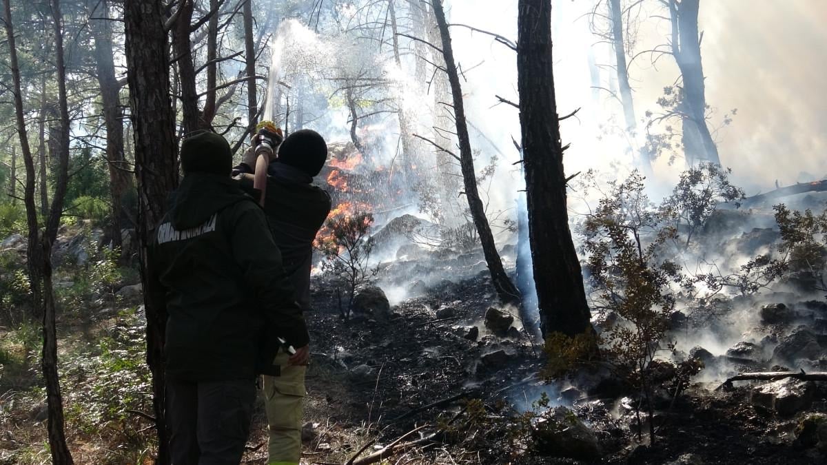 Zorlu arazide çalışmalar sürdüYangının çıktığı bölge, engebeli ve yüksek arazisiyle ekiplerin müdahale etmesini zorlaştırdı. Patika yolda devrilen ağaçlar, ekipler tarafından kaldırıldı. Arazözlerin bölgeye ulaşabilmesi için iş makineleriyle yol düzenlemeleri yapıldı ve bazı ağaçlar kesilerek yeni güzergahlar açıldı.