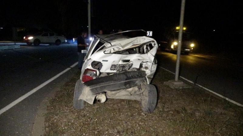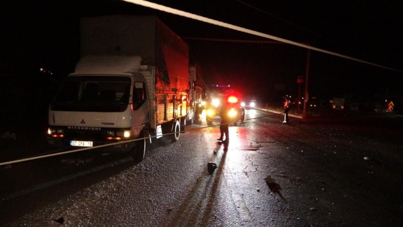 Çarpmanın şiddetiyle otomobil refüje çıkarak hurdaya dönerken, kamyon yol kenarındaki yüksek gerilim hattı direğini devirdikten sonra tarlaya girerek durabildi.