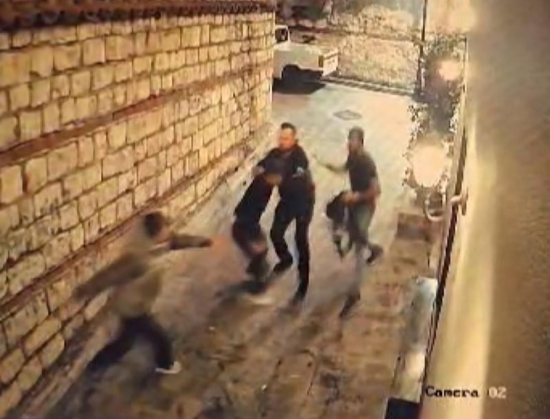 Uyarılara aldırış etmeyen ve otel önünde alkol almayı sürdüren Eyüp T. ve Halil S. ile güvenlik görevlileri arasında tartışma çıktı.