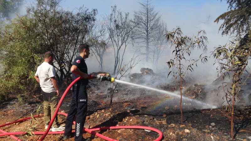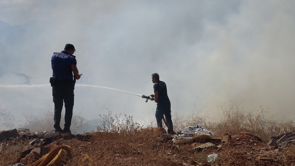 Antalya'da otluk ve ağaçlık alanda çıkan yangın, itfaiye ekiplerinin müdahalesiyle büyümeden söndürüldü ve alanda soğutma çalışması yapıldı.