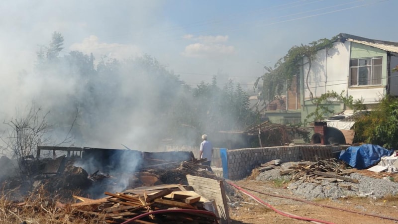 İtfaiye ekipleri yangına müdahale ederken, alevler bir gecekondunun bahçe duvarına kadar ulaştı.