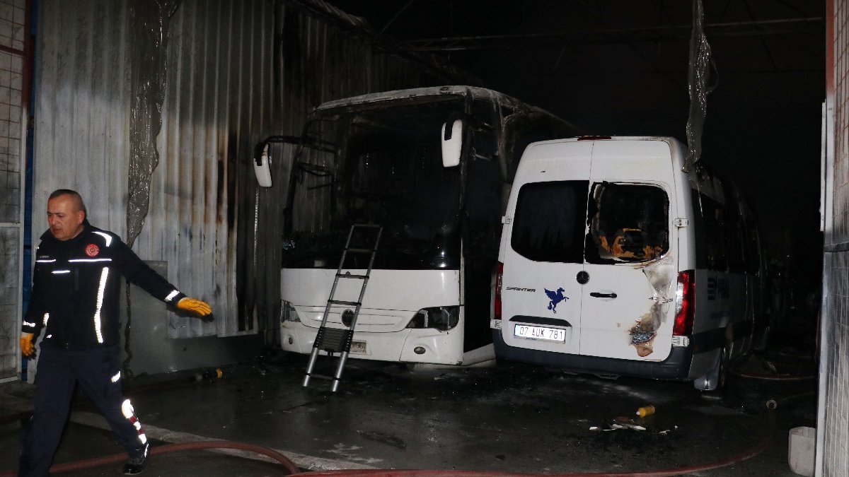 Yangın, iş yerine tamir için bırakılan bir servis aracı, otobüs ve otomobile de sıçradı.