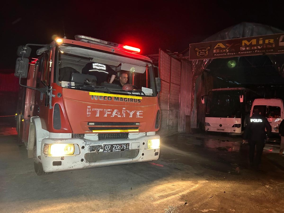 Antalya'nın Aksu ilçesine bağlı Güzelyurt Mahallesi'nde Ayhan A.'ya ait kaportacı dükkanında, dün saat 22.30 sıralarında henüz bilinmeyen bir nedenden dolayı yangın çıktı.