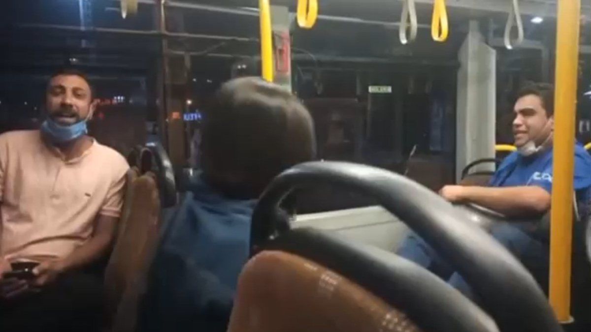 Otobüs içindeki darbukalı eğlence, vatandaşlar tarafından saniye saniye cep telefonu kamerası ile görüntülendi.