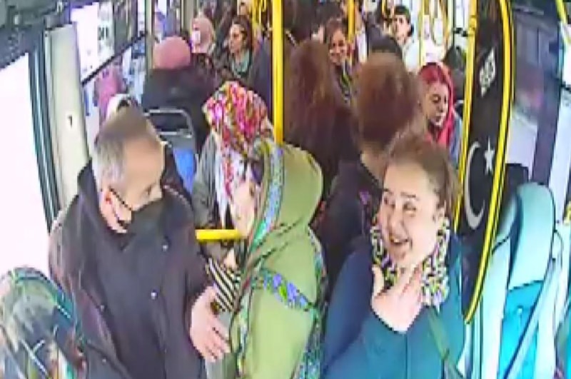 Yaşanan anlar, otobüs içerisinde bulunan araç kamerası tarafından saniye saniye kaydedildi.