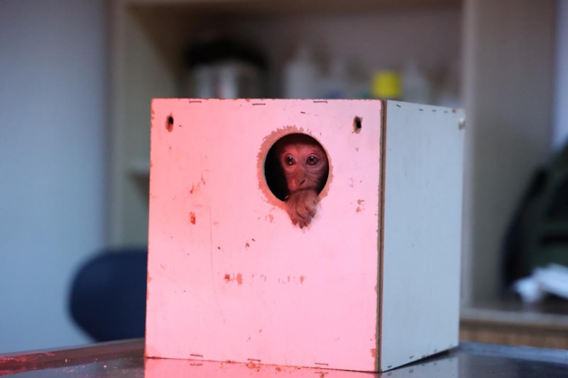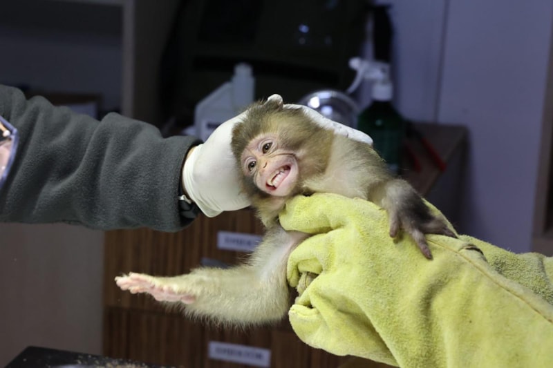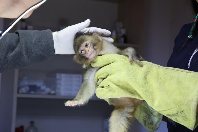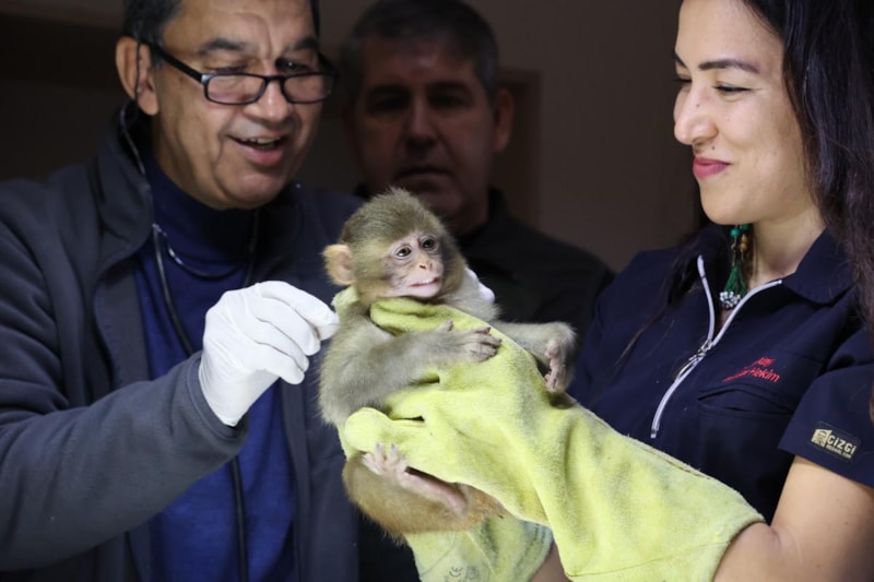 Görevliler, 'Rhesus' türü yavru maymunu, Antalya Büyükşehir Belediyesi Doğal Yaşam Parkı'na götürdü. Sağlık kontrolü yapılan maymun 15 gün rehabilitasyona alınacak.
