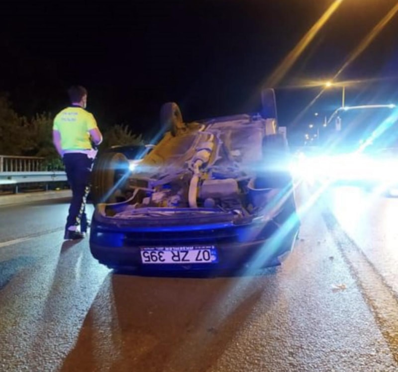 Antalya'nın Muratpaşa ilçesi Gazi Bulvarı üzerinde sürücüsünün ismi öğrenilemeyen otomobil, makas atarak süratli bir şekilde ilerlediği sırada takla attı.