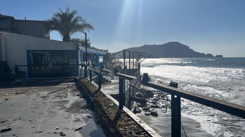 Alanya ilçesinde bulunan bir balık lokantasının dalgaların yükselmesiyle su altında kaldığı anlar güvenlik kamerasına yansıdı.