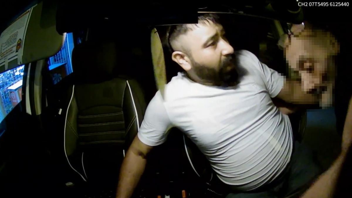 Görüntülerin devamında; şoför ve yolcunun araçtan inmesi, kısa süreli bir konuşma sonrası Musa Ü.'nün Mustafa B.’yi iterek araca binmeye çalışması, ardından taraflar arasında yaşanan boğuşma yer aldı. Gaspın ardından Musa Ü.'nün direksiyon başına geçerek soğukkanlı şekilde aracı kullandığı da görüldü.