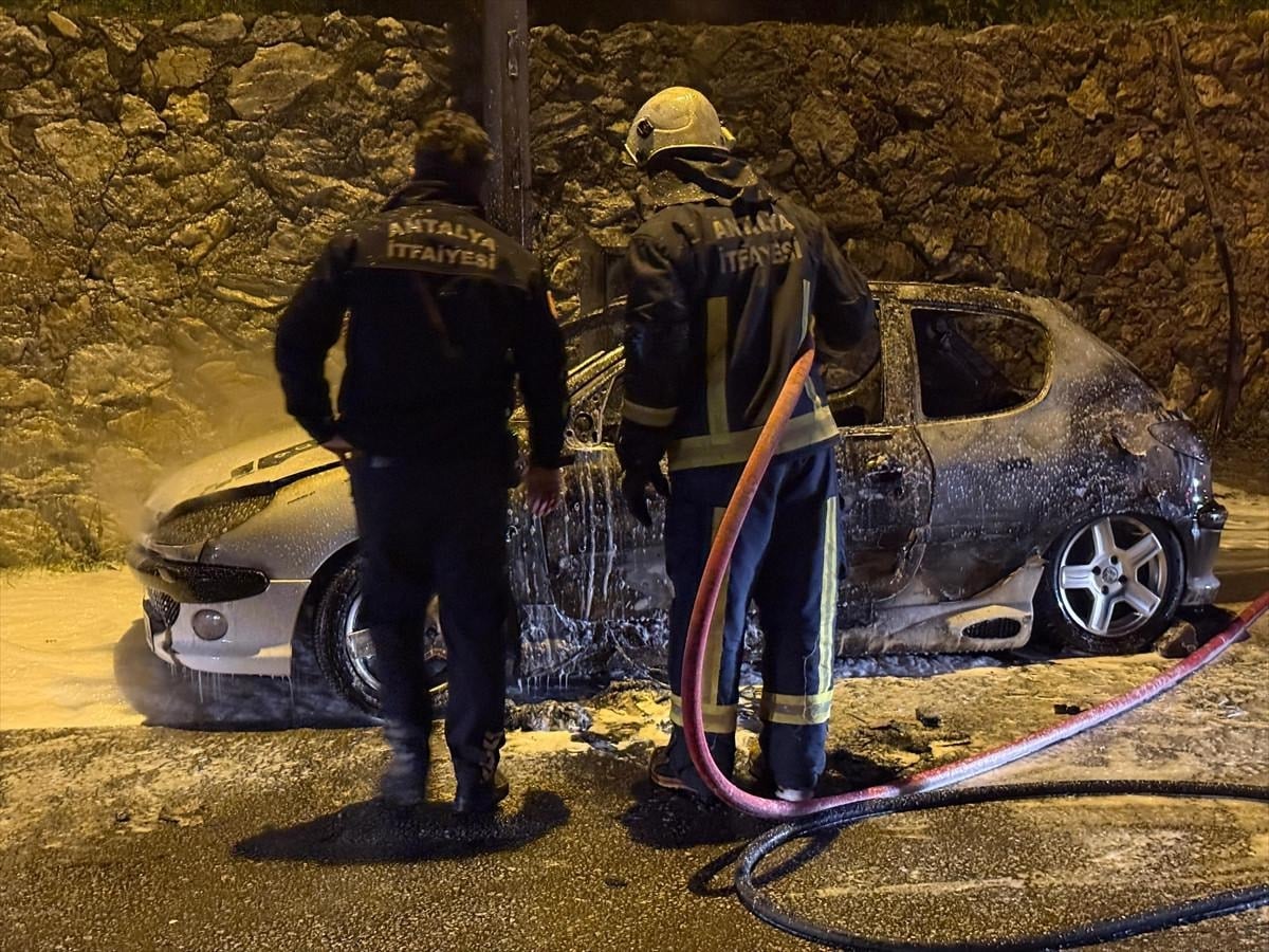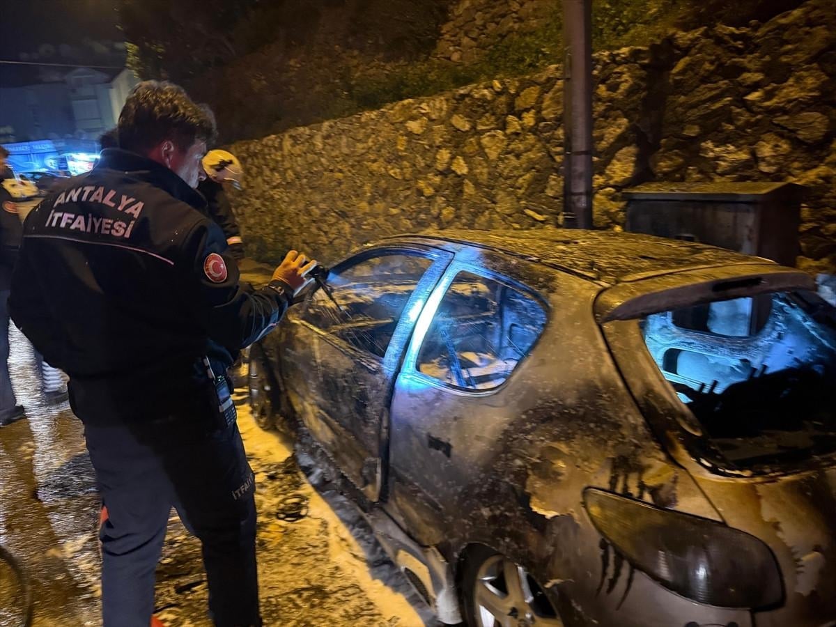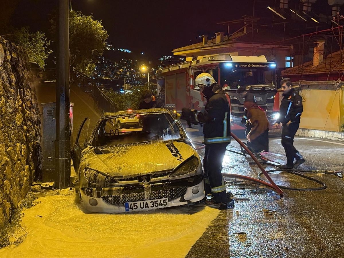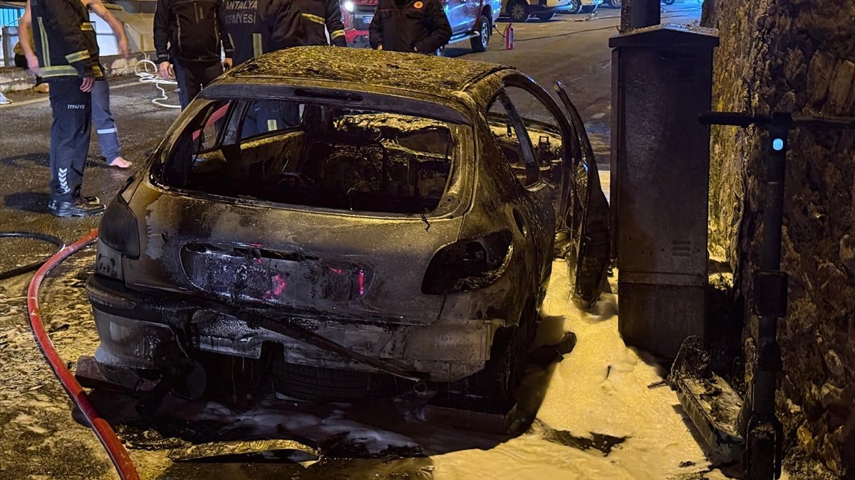 Antalya'nın Alanya ilçesi Çarşı Mahallesi Kaleyolu Caddesi'nde park halinde bulunan bir otomobilde henüz belirlenemeyen nedenle yangın çıktı.