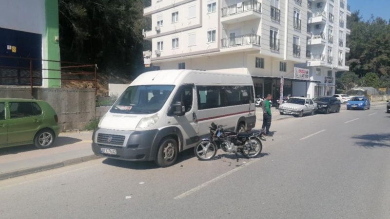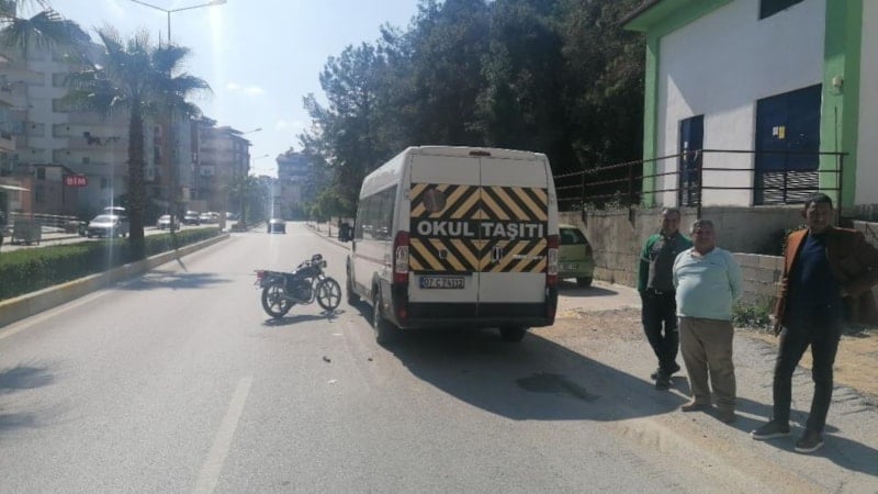 Manavgat ilçesinde motosikletiyle seyir halinde ilerleyen 16 yaşındaki sürücü Mehmet Ali Y., yol kenarında park halindeki okul servisine arkadan çarptı.