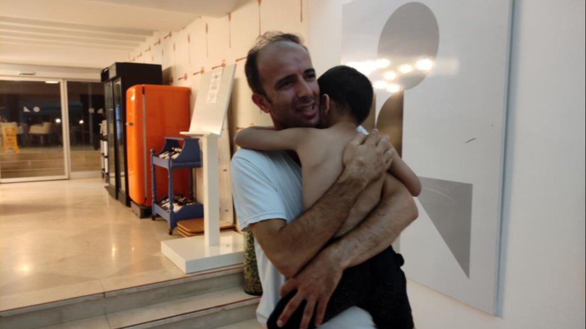 Otele gelen baba Felemes Aslı'nın, büyük sevinçle evladına sarılması dikkatlerden kaçmadı.