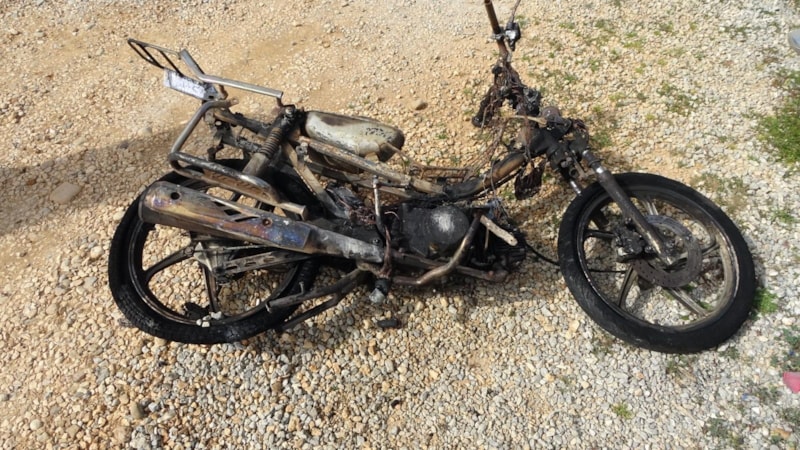 Olay yerine gelen ekipler, tamamen yanmış ve sadece iskeleti kalmış bir motosikletle karşılaştı.