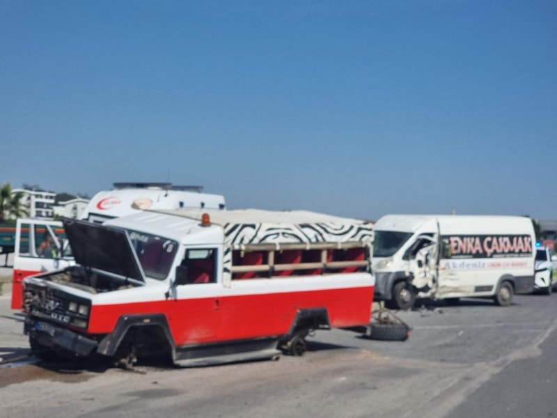 Safari aracının direksiyon hakimiyetini kaybeden sürücü park halindeki 07 LDZ 58 plakalı kapalı kasa kamyonete çarptı.