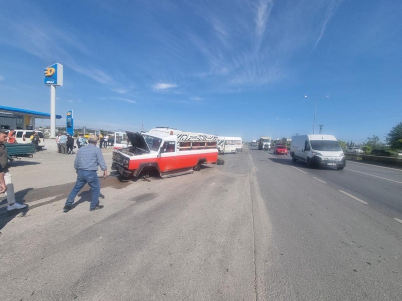 Antalya'nın Manavgat ilçesinde seyreden uzun yol şoförü Ali K.'nın kullandığı tırın tekerleklerinden biri, Ilıca Mahallesi'nde bulunan akaryakıt istasyonunun önüne geldiği sırada koptu.
