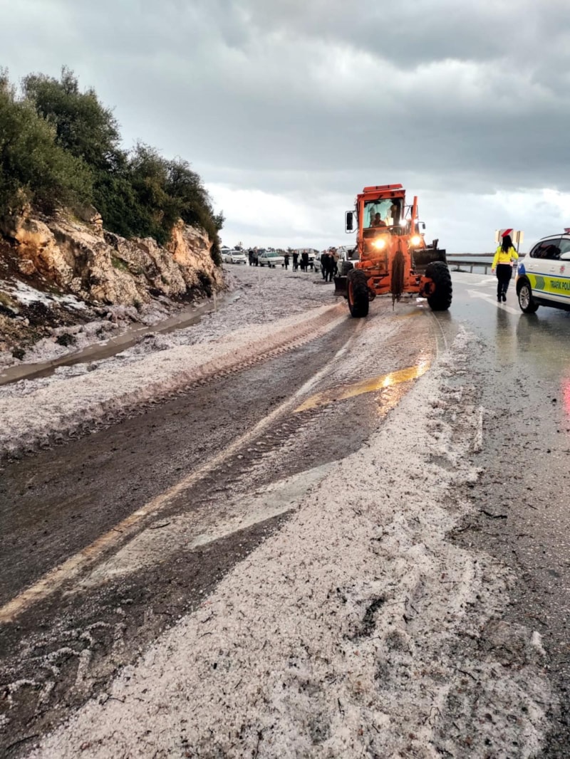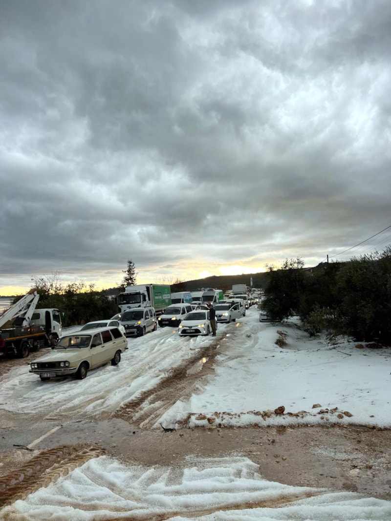 Antalya’nın Demre ilçesine bağlı Beymelek Mahallesi’nin İskele mevkisinde, saat 17.00 sularında etkili olan şiddetli dolu ve sağanak yağış hayatı olumsuz etkiledi. Yoğun yağışın neden olduğu sel ve dolu birikintileri, D400 karayolunun dört farklı noktasında trafiği tamamen durdurdu. Araç geçişlerinin kesildiği bölgeye çok sayıda ekip sevk edildi.