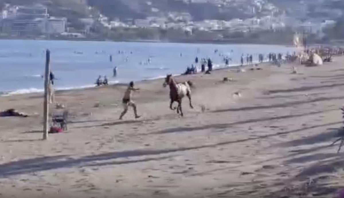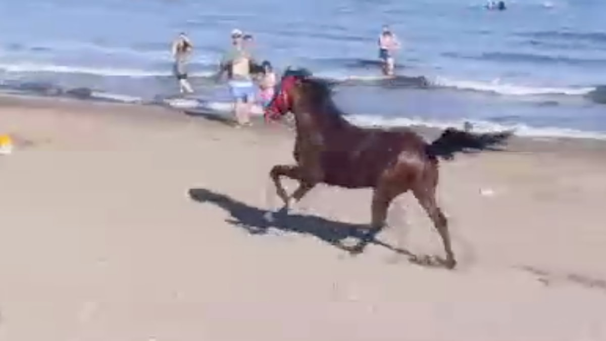 Başıboş at, plajda kısa süreli paniğe neden oldu.