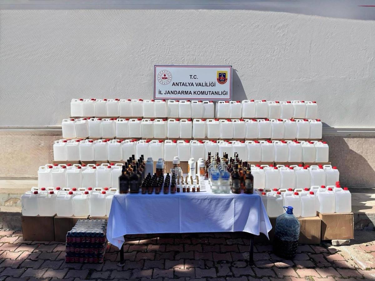 Antalya Cumhuriyet Başsavcılığı koordinesinde Antalya İl Jandarma Komutanlığı KOM Şube Müdürlüğü ve Kepez İlçe Jandarma Komutanlığı ekiplerince gerçekleştirilen operasyonda, U.B.D.'nin ikametinde yapılan aramalarda 5 bin 250 litre etil alkol, 100 litre kaçak/sahte alkol ve 500 adet alkol kiti ele geçirildi.