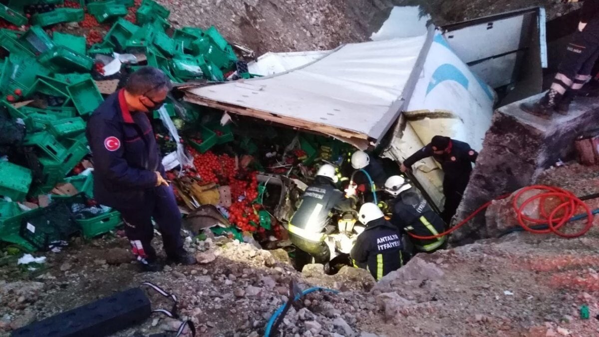 Sürücünün naaşı, Antalya Büyükşehir Belediyesi itfaiye ekiplerince uzun uğraşlar sonucu çıkarıldı.