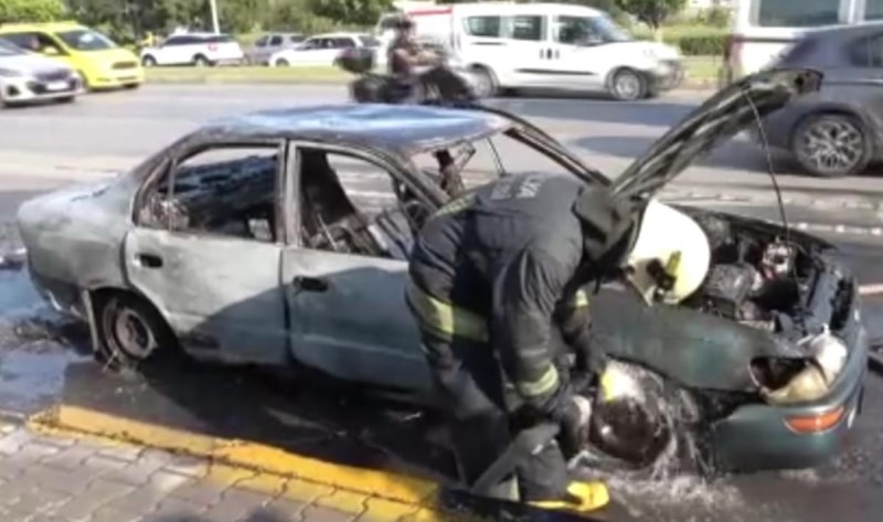 Otomobilin alev alev yandığı anlar, çevredeki vatandaşlar ve yoldan geçen sürücüler tarafından cep telefonuyla görüntülendi. Yangının çıkış nedeni ise itfaiye ekiplerinin incelemesinin ardından netlik kazanacak.