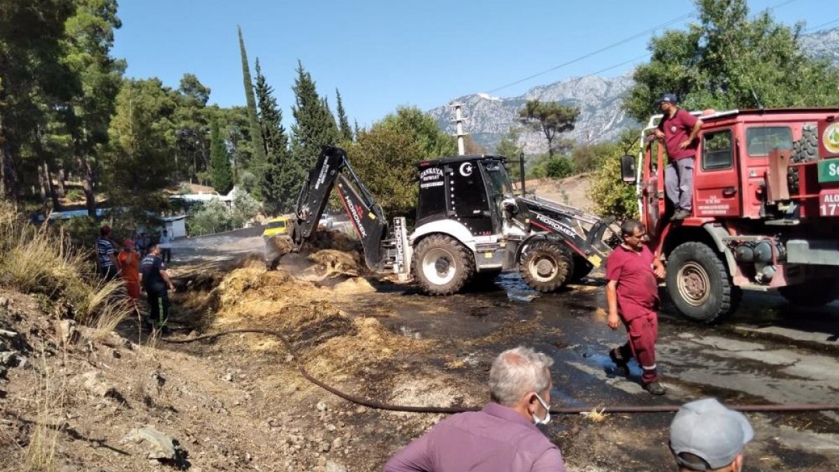 Toklu, kamyonda yüklü olan saman balyaları arasında çıkan dumanı fark edince aracı park etti.