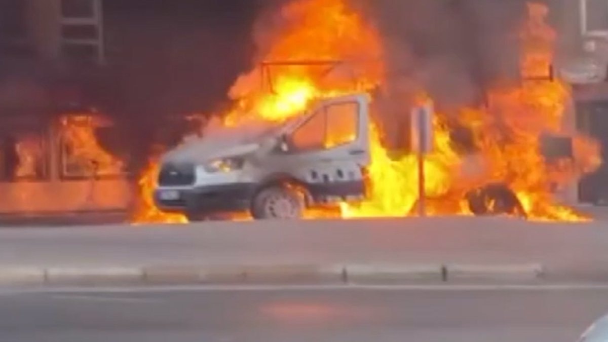 Yangında, kamyonet kullanılamaz hale geldi.