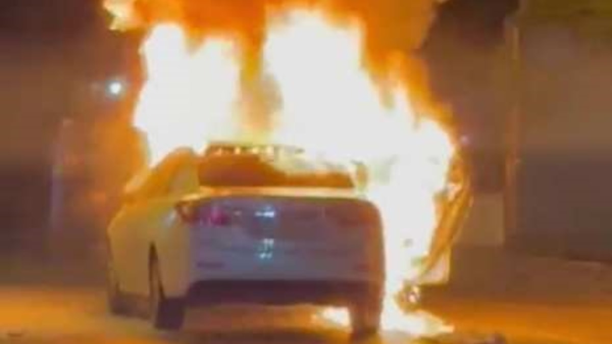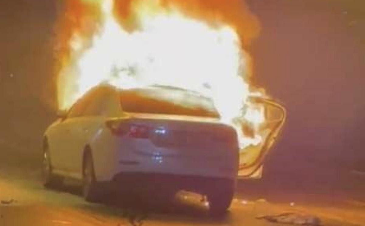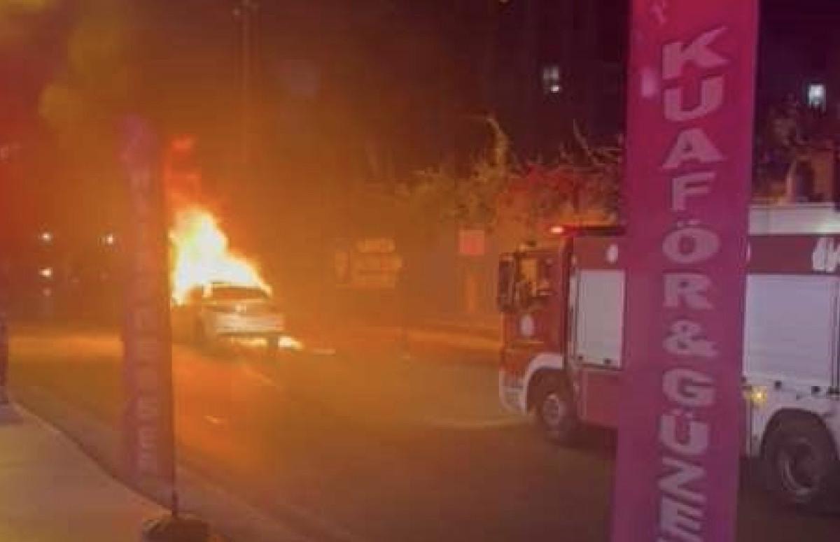 Araç sürücüsünün çabası yetersiz kalırken, otomobil kısa sürede alev topuna döndü.