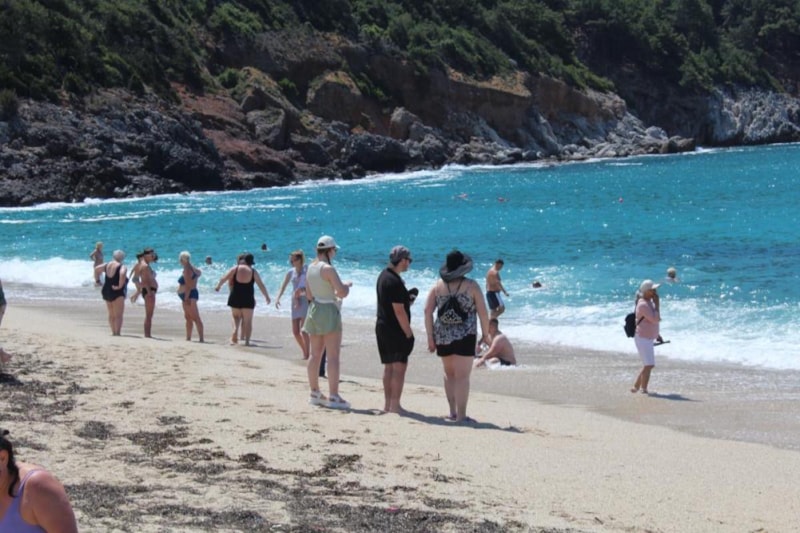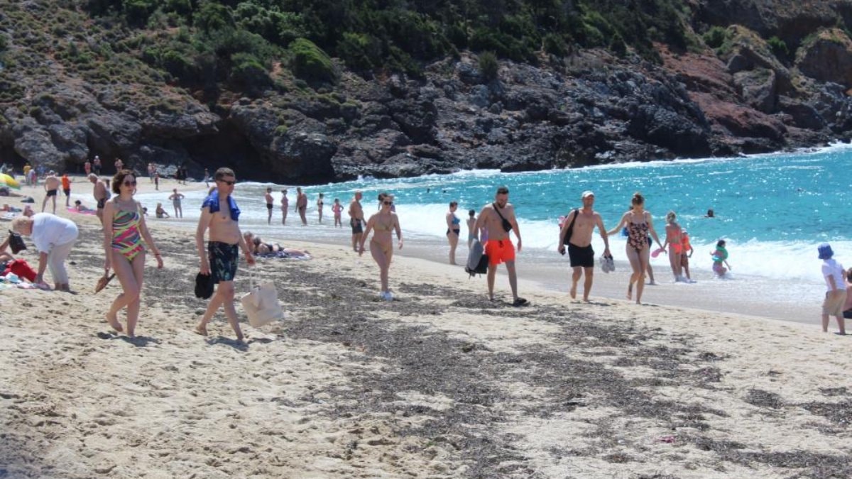 Bazı turistlerin sahilde güneşlendiği, bazılarının da denize girdiği gözlemlendi.