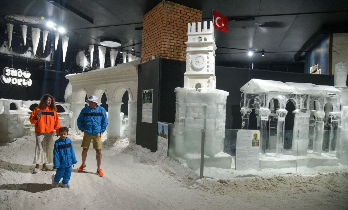 Ailesiyle kar odasına gelen Fatma Ülkü Aslan, "Antalya çok sıcak. Dışarıda lavın içindeymişiz gibi ama burada hava çok serin. Montla geziyoruz ve sanki kış mevsimindeyiz gibi. Denize girmekten daha ferah hissettiriyor kar odası." dedi.